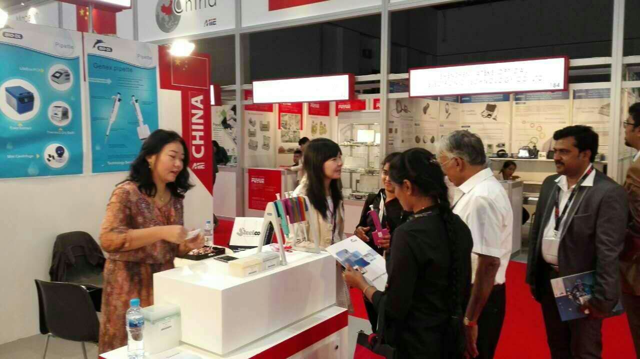 靚麗,帥氣的海外代表們在A38號展位熱情大方向中東客戶們介紹BIO-DL】寶予德Colour移液器。